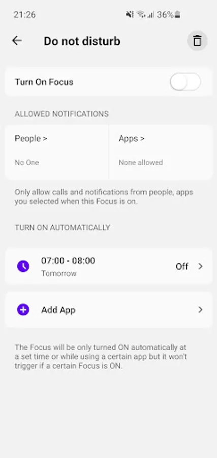 * Data Usage Access Turn Focus on/off when opening/closing apps.
