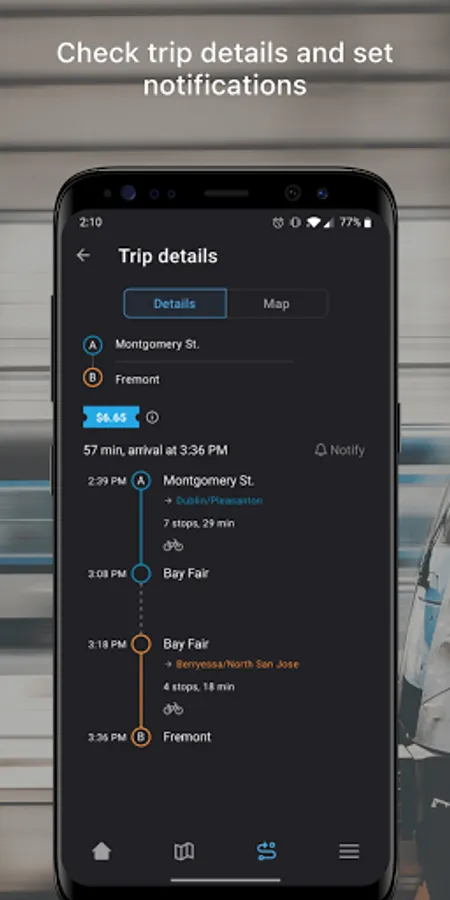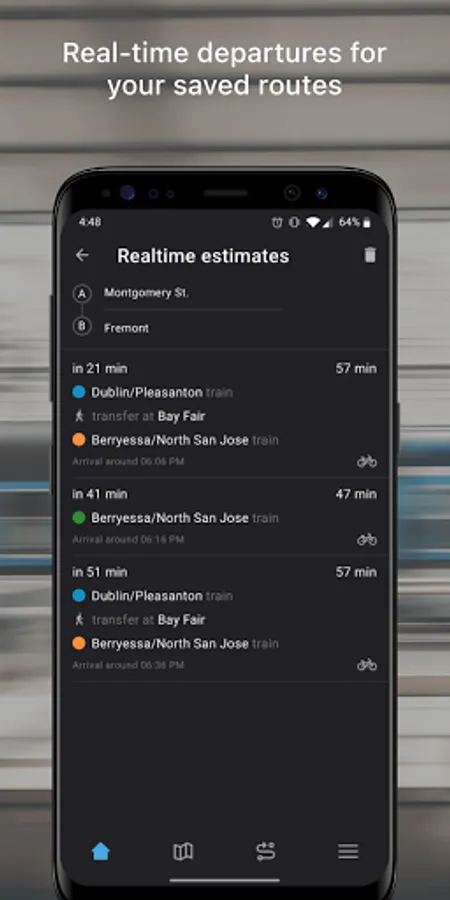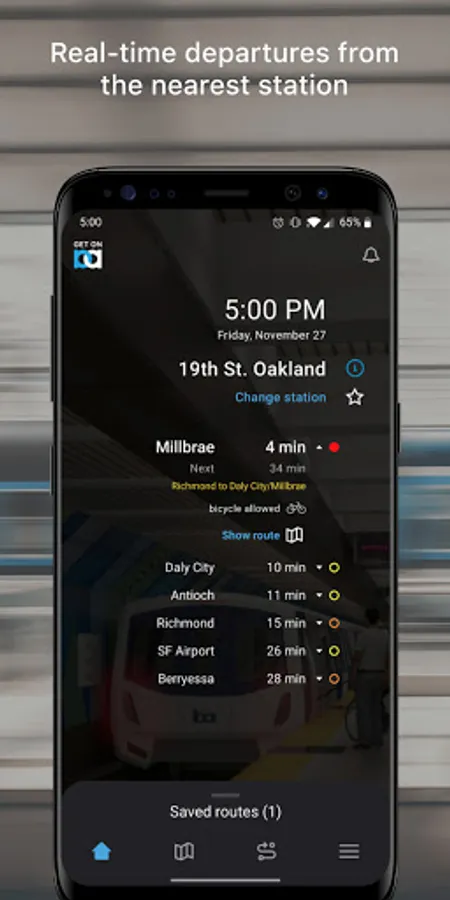 Using Get on BART App is the easiest way to plan your trip and get accurate real-time train departures with data straight from BART, along with the official service alerts.