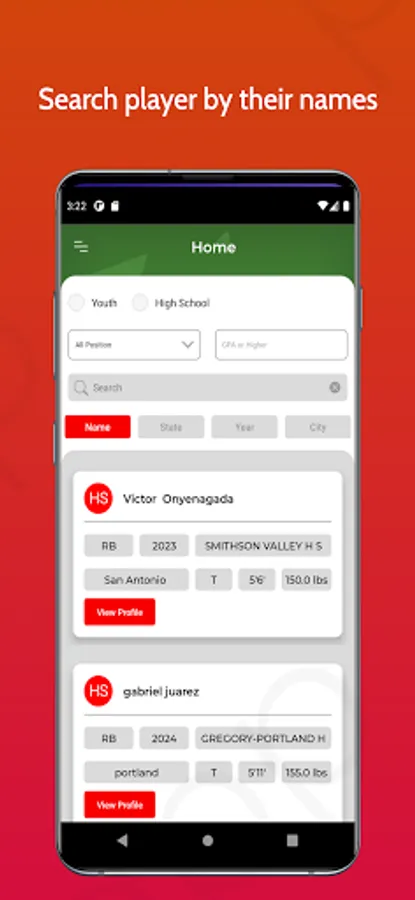 The GridironStuds App connects high school football players with college coaches and college football fans. Easy to use profile building is a snap with this app as you can add all your important recruiting information to your profile and keep fans updated with your recruiting status.