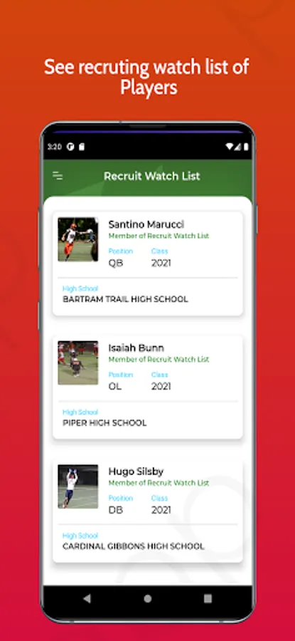 Fans can show their support for recruits by becoming their fan, adding your favorite schools logo to their profile and message to players. You can also get the latest news on recruits straight from the source. College football coaches can stay up to date on potential recruits by following them on this app.