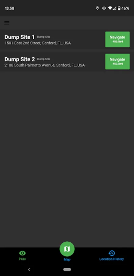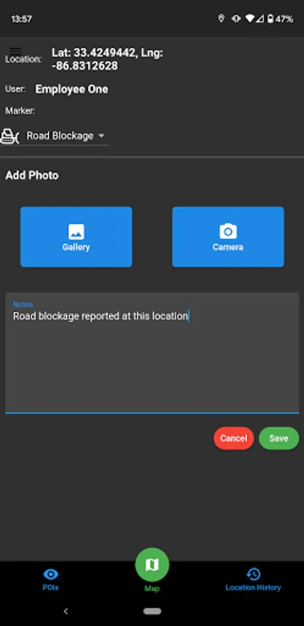 Users can select a POI and navigate to this location. The POIs are added by the project manager in the Web Interface. Once navigation is selected their current location is marked as last known working location for them to return to the exact location they left from.
