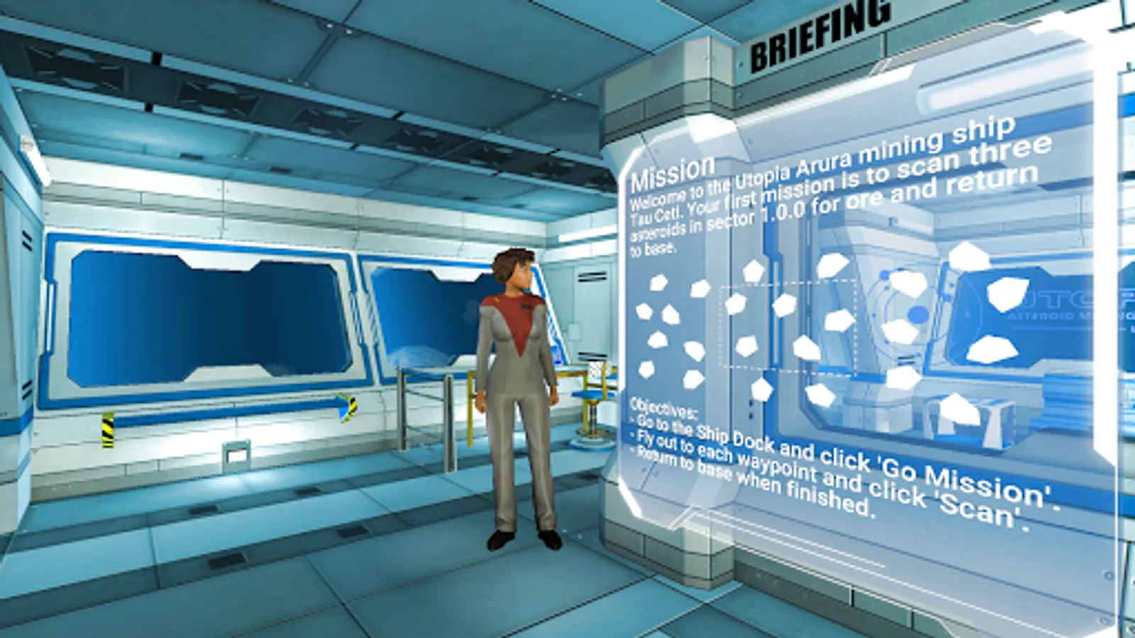 Welcome to the Utopia Arura mining ship Tau Ceti. Your overall mission is to mine asteroids for usable resources. Your mission commander is the android Io. She will brief you on all missions and manage your progress.