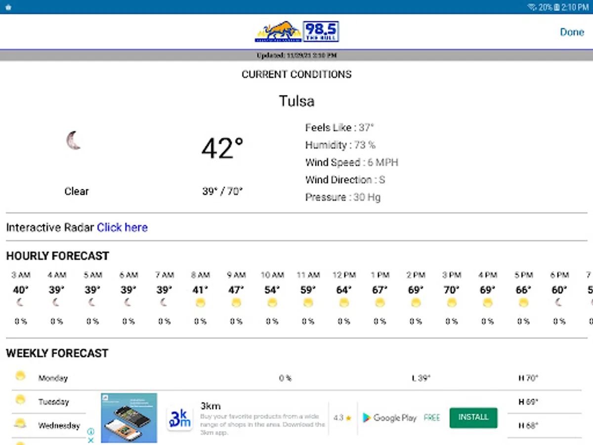 - Use the alarm clock to wake up to “Tulsa’s Country” 98.5 The Bull. Record a personal reminder to play before waking to the station.