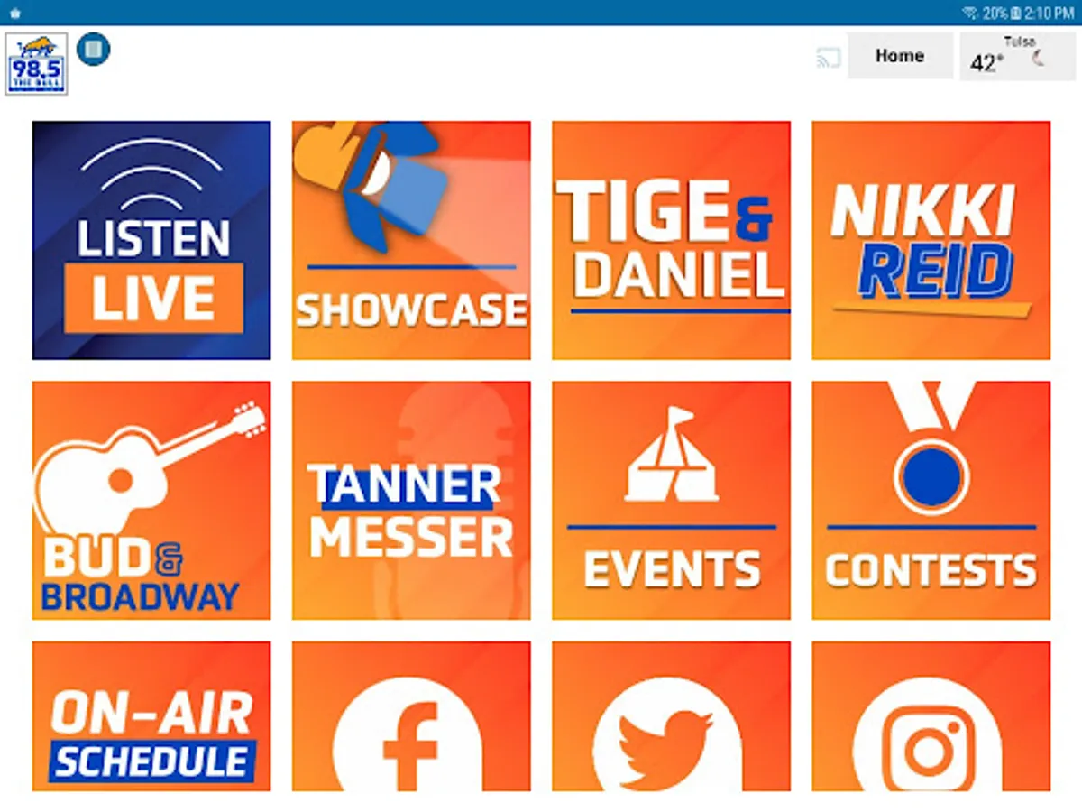 - View current playing show, latest podcast episodes, up to date station social media feeds and local news on a single screen