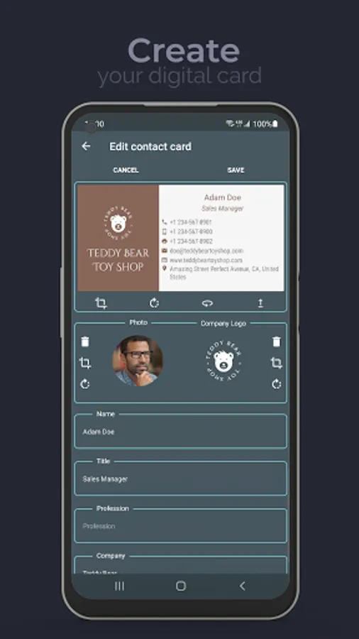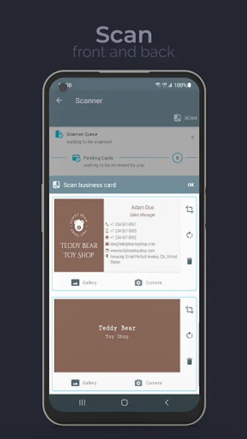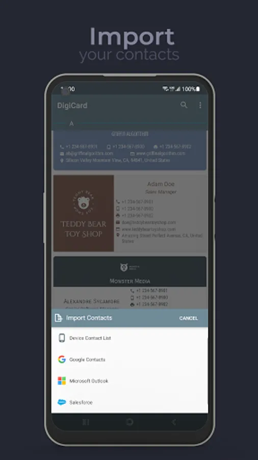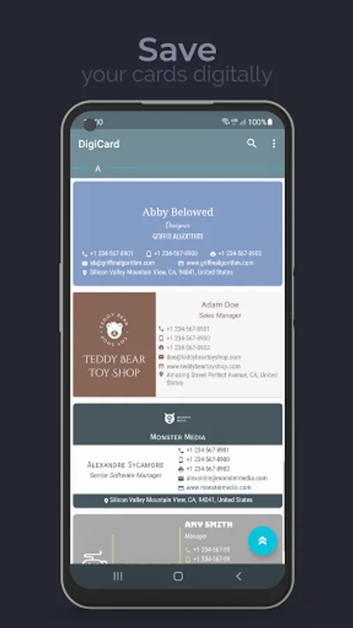 • Save to Device Contacts List Option: When you save your cards, you can also save them to device contacts list automatically.