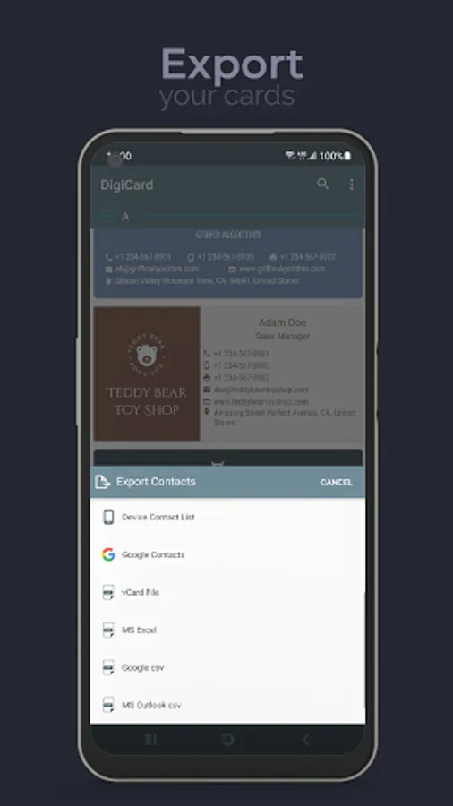 • Export to Google Contacts: You can export your business cards to Google Contacts directly.