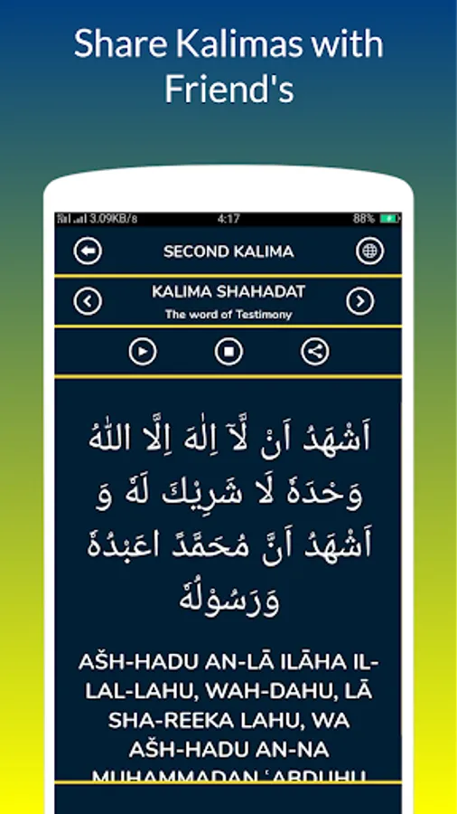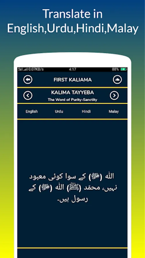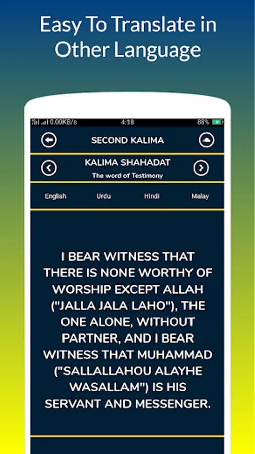 This particular application makes the process of learning these Islamic Kalmas by heart very easy and convenient. The App includes Six Kalimas in Arabic and English, Urdu, Hindi and Malay translation and transliteration with interactive interface.