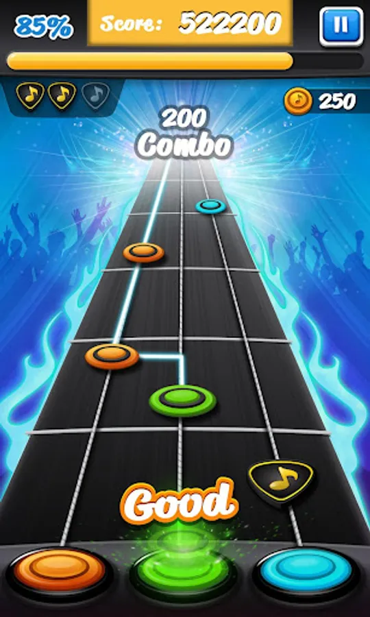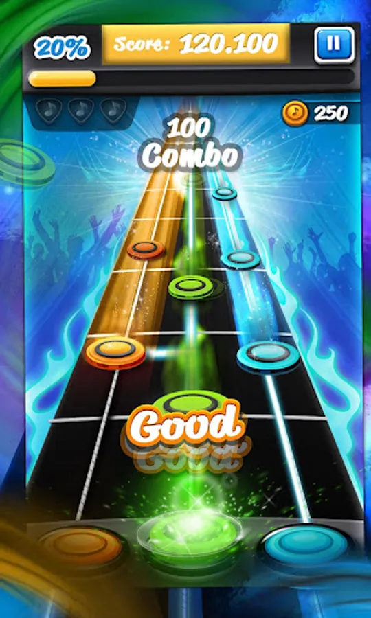 Feel the adrenaline of playing a guitar solo all the way in Rock Hero 2. Combine different tap styles and drags to complete all the songs in the game.