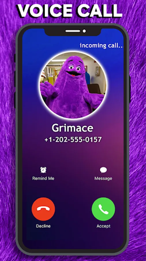 Grimace Shake: Fake Video Call is the ultimate prank app designed to add some excitement and fun to your life! Ever wanted to get out of an awkward situation or play a realistic prank with your friends? Look no further! Grimace fake call is here to help you create realistic fake phone calls that will surprise and confuse everyone around you.