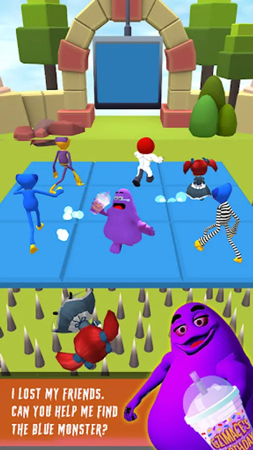 Join grime shake and his squad of scary monsters from scary game, escape room or survival master as they embark on a thrilling adventure of squid game. It's grime’s birthday, and they have decided to celebrate by participating in survival challenges of the squid game series.