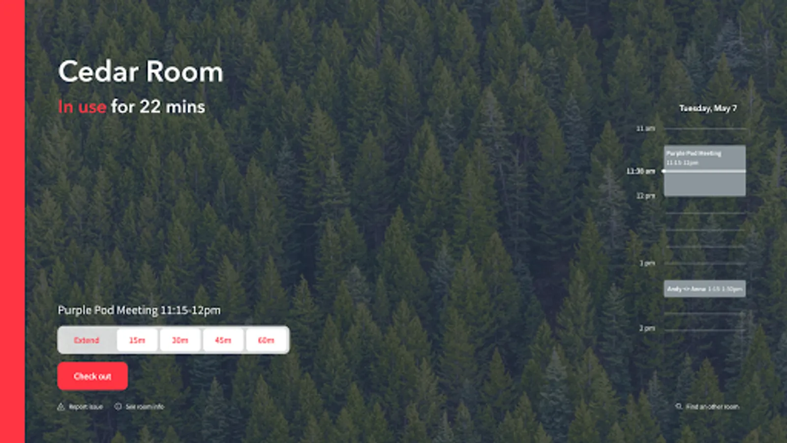 Find an available meeting room on the go. Use the app to see a room’s schedule, book the room, and check in and end meetings so the room’s freed up when not in use.