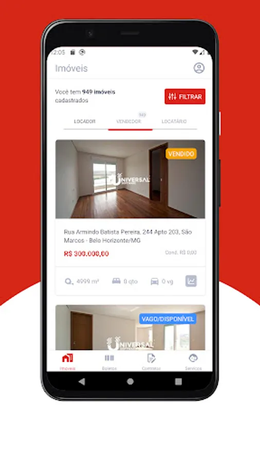 - My properties: information about each property according to code, purpose, type and value negotiated.