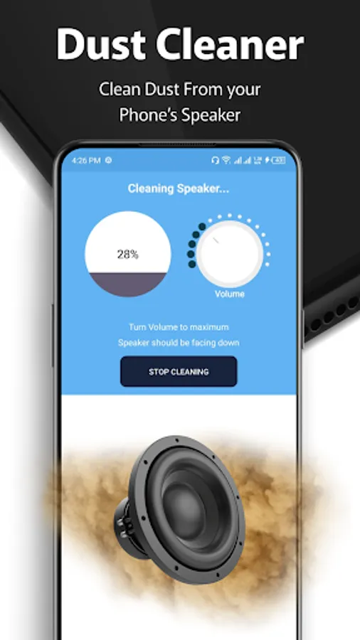 Keep in mind that Speaker Cleaner, uses sine wave sounds of predefined frequencies for water eject, dust and rust from the speaker as water eject and volume boost. Sound waves cause the speaker to vibrate with high frequency sounds and eject water which stuck inside like dust cleaner app.