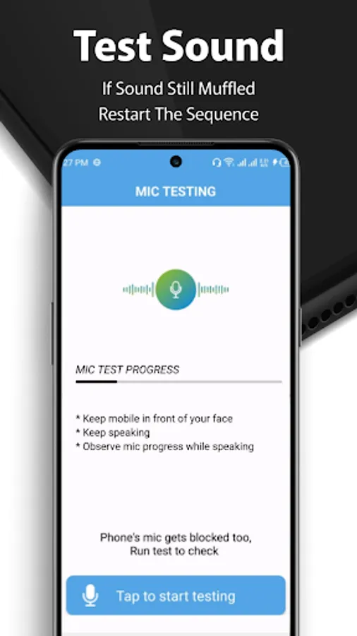 - Microphone Test: Mic test is the ultimate feature of speaker cleaner which helps to test microphone of your fix phone, it creates sine waves when you test mic, if sine waves are not normal than your phone fails the microphone test. In order to test microphone for another try, you have to run the speaker cleaner and rust