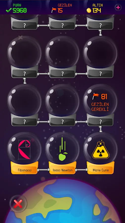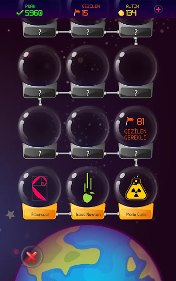 If you answer all the questions on Formula X planet correctly, you will reach a new formula and meet the scientist who owns that formula. There are very important scientists inside and they are all looking forward to meeting you. Don't worry, you can come back and try your luck again.