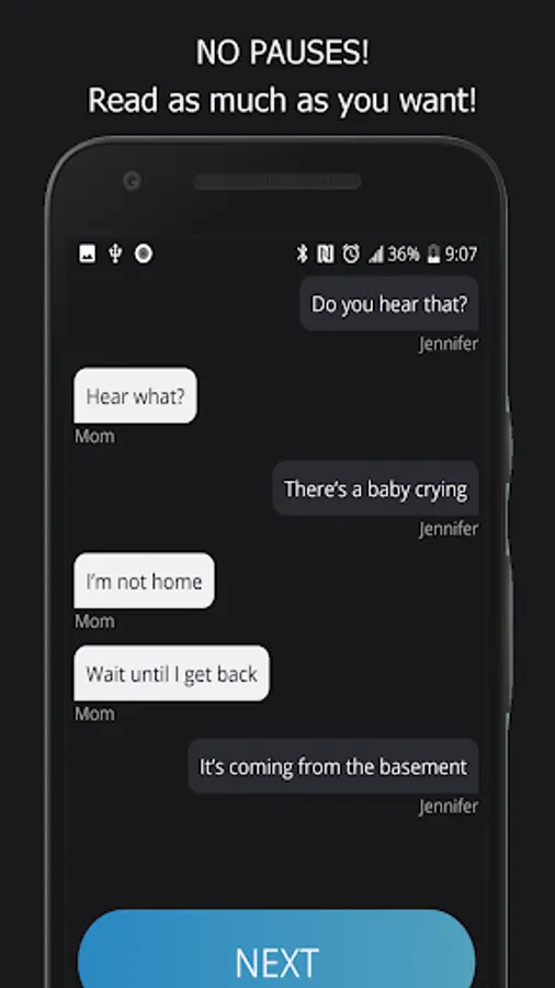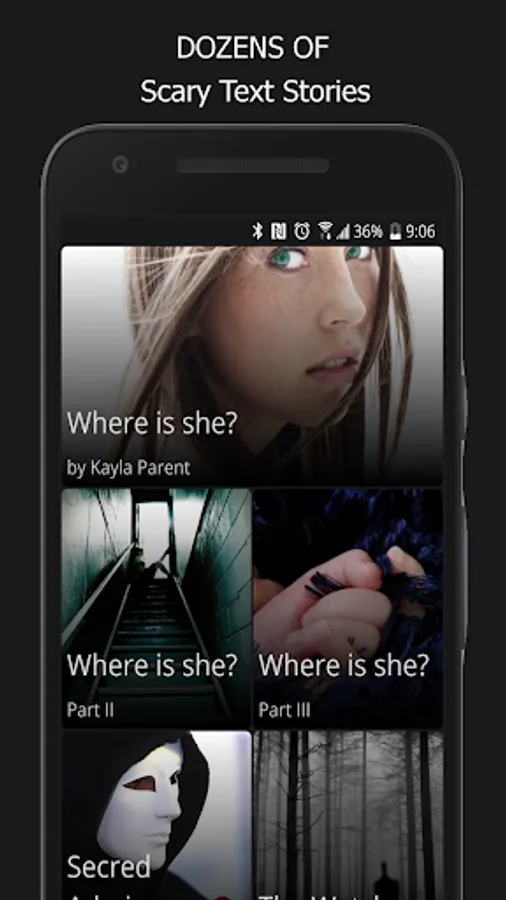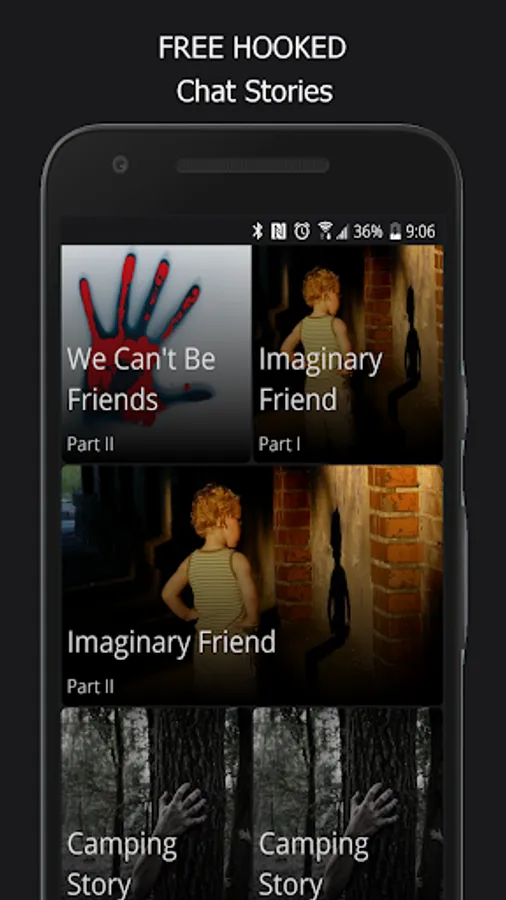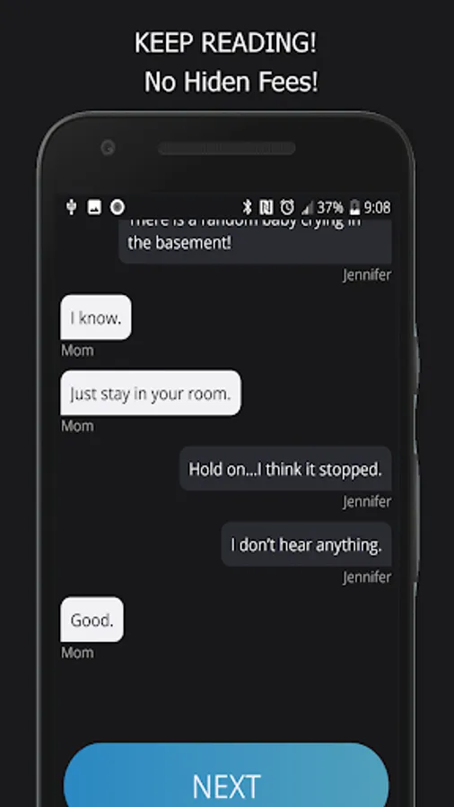 The creepy App has dozens of creepypasta, textingstory, scary stories, creepy texts, romantic stories, thriller, steamy fictions and many other text stories, what makes this chat app with ghost stories even more addicting. The best thing is that not only Gripped makes you hooked on words but also lets you read scary text stories free with goosebumps and lures you away...