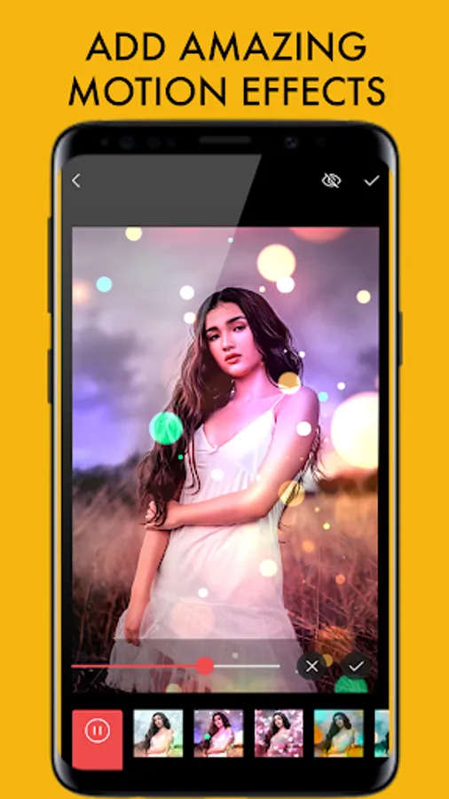 Edit and adjust the photos to make them standout even more. Add cool effects and elements like rain, snowflakes, butterflies and many more... You can add these effects to make them look more professional. You can also add these overlays and effects to make your photos more fun and eye-catching.