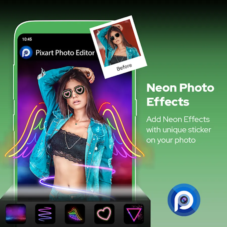 Pixart is a professional photo editor that is both simple to use but very powerful.💪 With Pixart you can add so many photoeffects to your photos and selfies, including: background eraser, adding neon lights, add colorful lines stickers, create artistic black and white photo, blur background like you are using a DSLR camera, and add many filters and photoeffects. 😎 Photo enhancement is super easy and quick. Download Pixart Photo Editor now!🌠