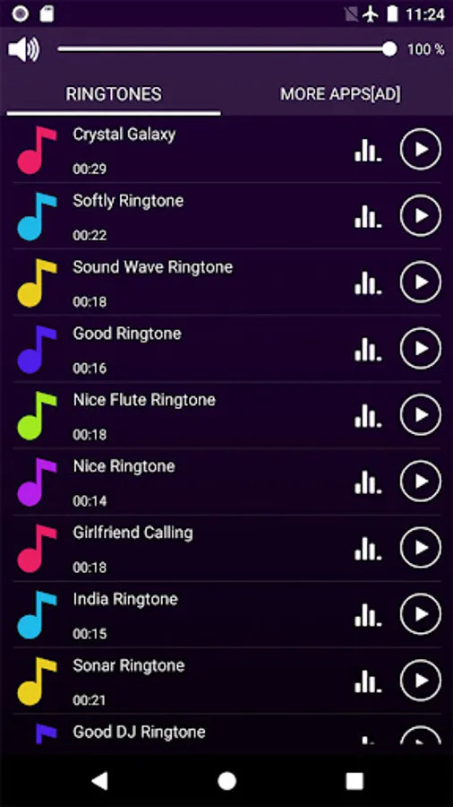Open this really good ringtones app, you can press the " play " button to listen to the MP3 music tones.