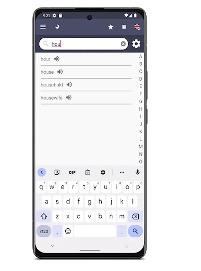 • With a swipe through the alphabet, you can jump directly to the Desired word group using the QUICK SEARCH function.
