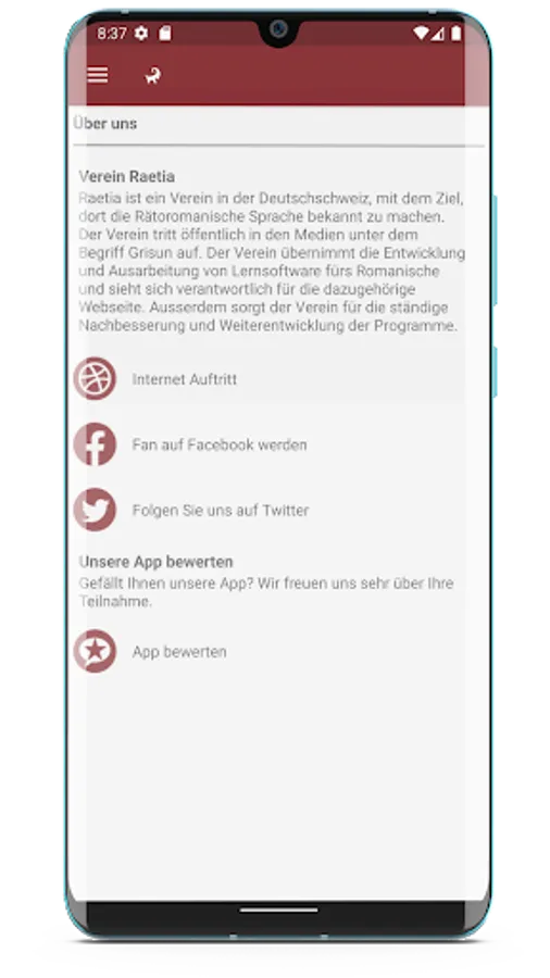 Our app will accompany you in everyday life and traveling. Learn the fascinating fourth national language of Switzerland in speech and writing.