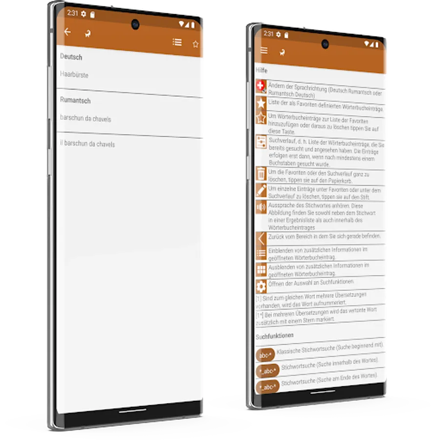 This unique, professional and reliable dictionary Romansh Vallader works completely offline and contains over 80,000 keywords, terms, phrases, translations enriched with additional valuable information- ideal for everyday life, study, work or travel! Thus, this offline dictionary is the perfect translator for you.
