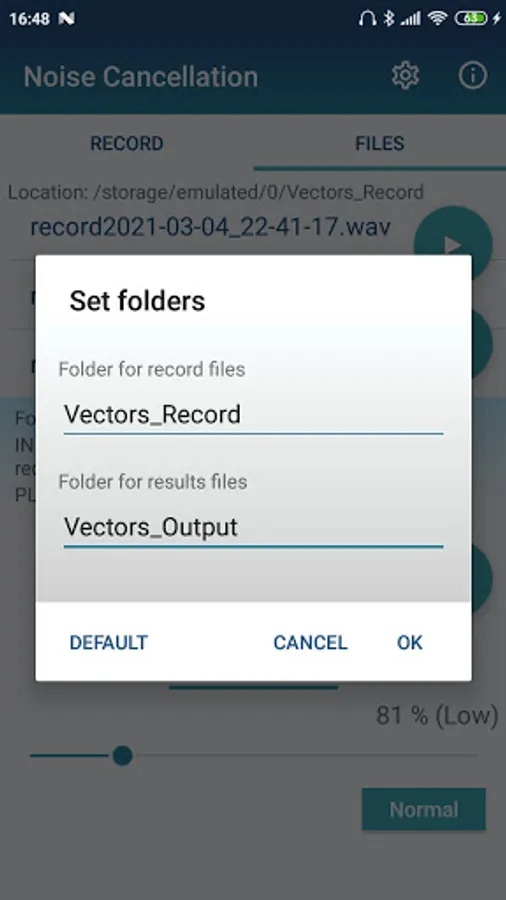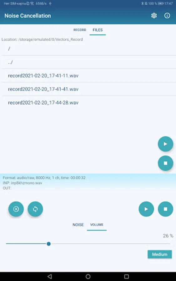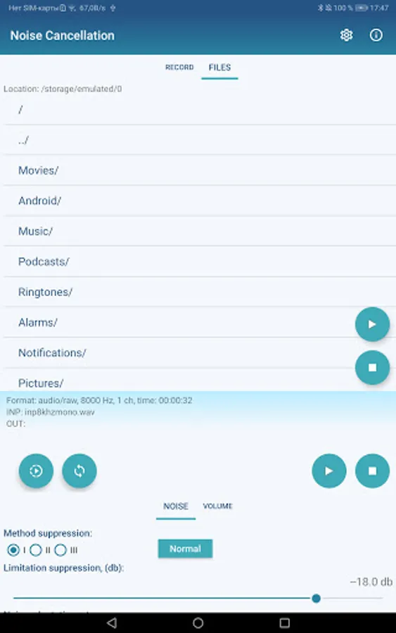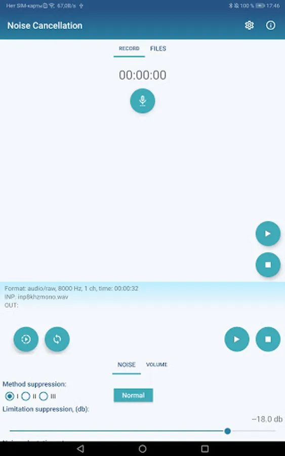 Also the App allows to save into wav file with audio stream after post processing with NC filter.