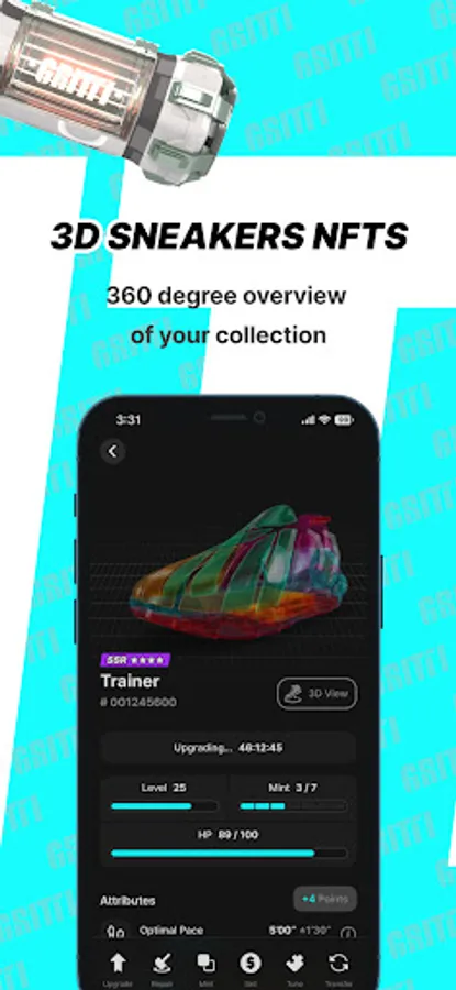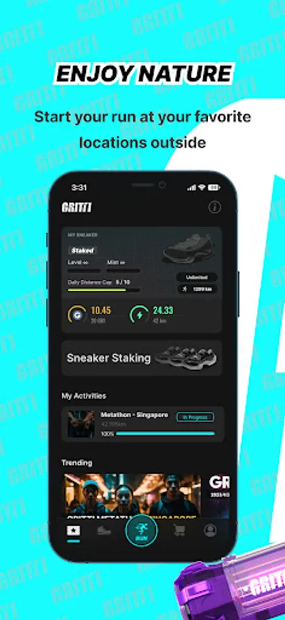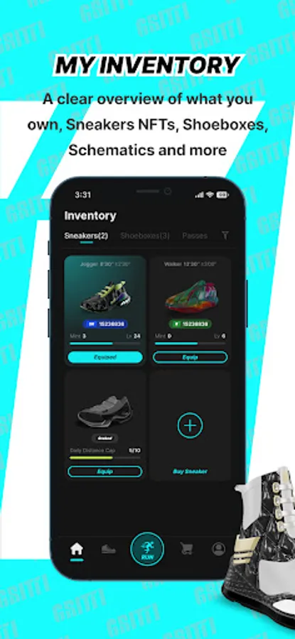 - Equip our Sneaker NFT and begin running to earn in-app token rewards GRI