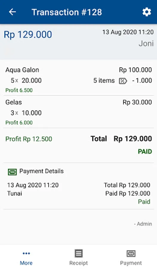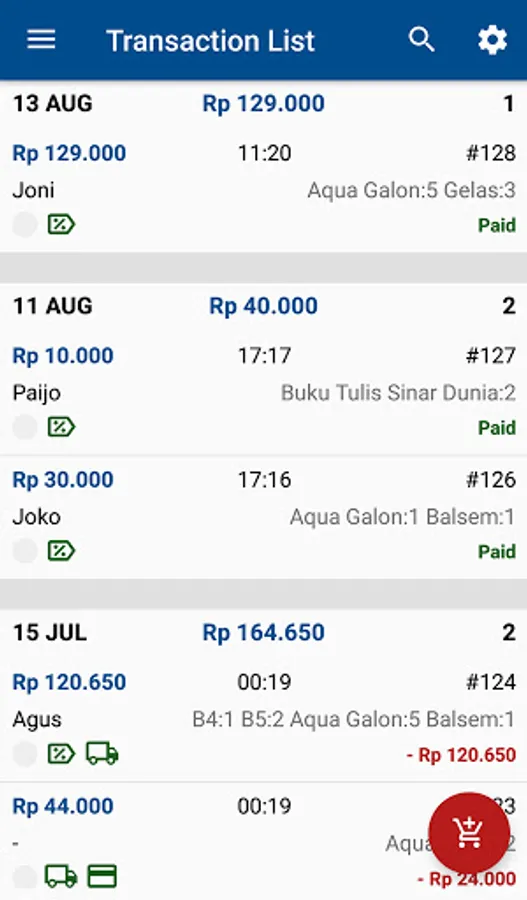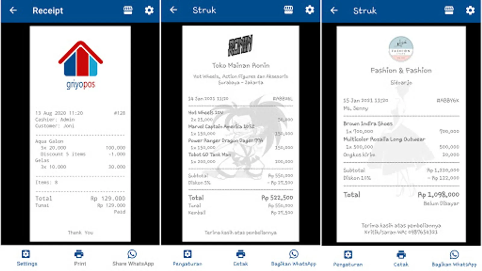 - Status of transaction can be adjusted for: Waiting, Process, Done and Delivered. As well as in Receipt.
