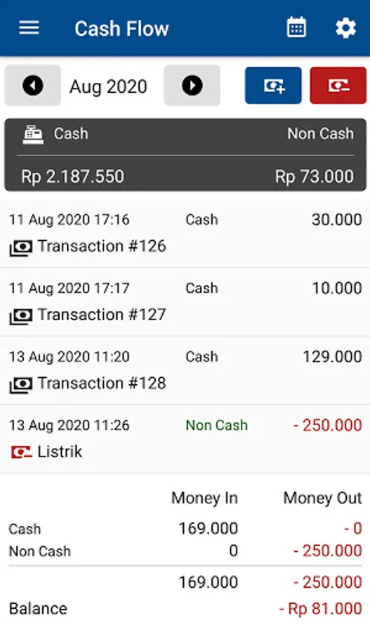 - Record your transactions and payments with details for unpaid, less pay, cash, non cash.