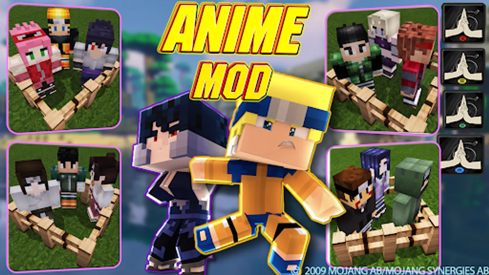 Welcome to the Anime Ninja Attack Konoha Mod for survival maincraft pe blocks game. In this ninja craft mods pack you will find more intersting block pe mods, maps, skins and shaders for vanilla pe game. Using this app you can easily install all skins and mods with maps just in one click. Bonus addons for pe are also included in this app.