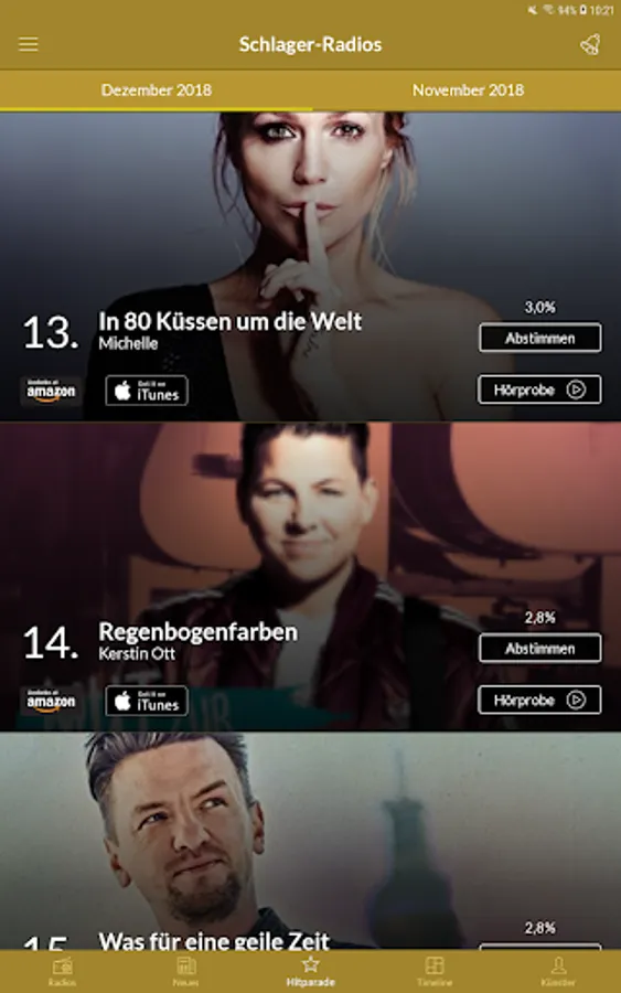 The listed stations offer a great program of folk music, oldies, to the evergreen hits. But also modern pop music and hits from the Schlager_Charts Today you can enjoy.