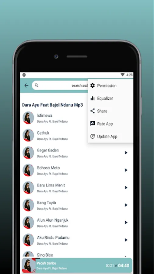 The Dara Ayu Feat Bajol Ndanu Mp3 Offline application is very light and easy to use plus it saves quota because you don't need an internet connection when playing this Dara Ayu song.