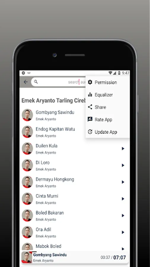 which is light and easy to use, this application does not require an internet connection because we set it offline, so you can still get Emek Aryanto Tarling Cirebonan entertainment without data.