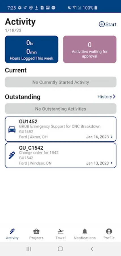 Allows GROB service personnel to manage their activities while out on a job and ensure that their hours are properly logged.