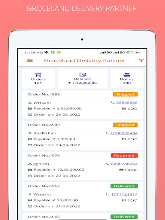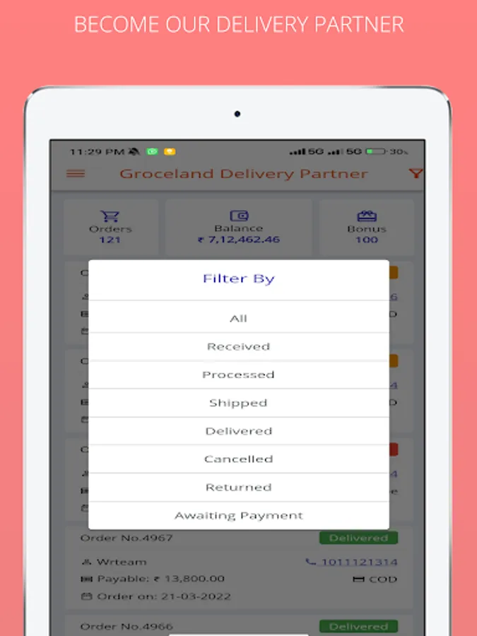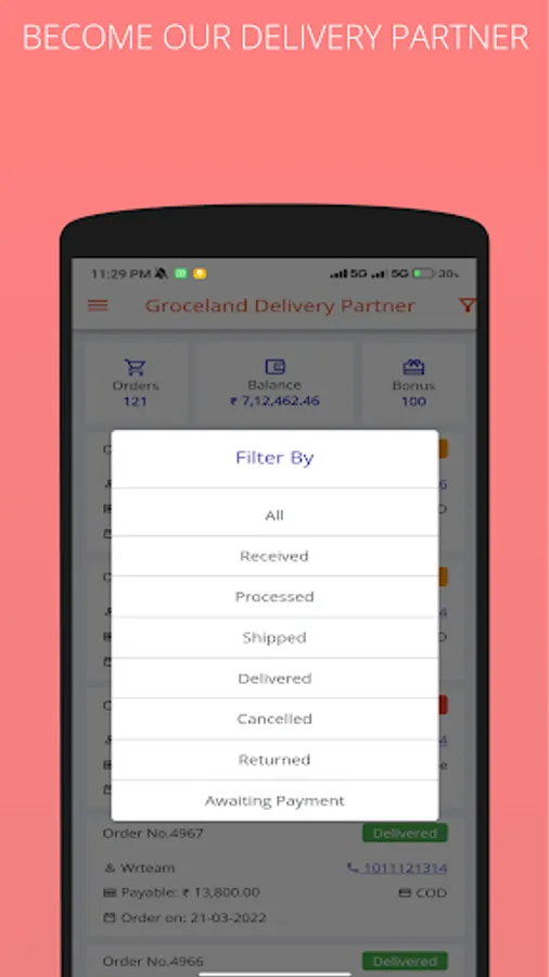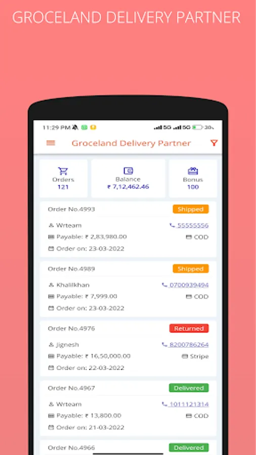 Groceland delivery partner app its connected with store vendor and provide delivery groceland's users