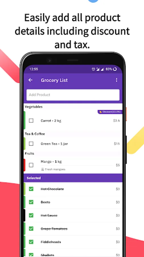 ✔ Group the items on your shopping list maker by product categories in the list maker app