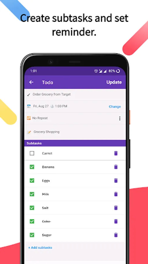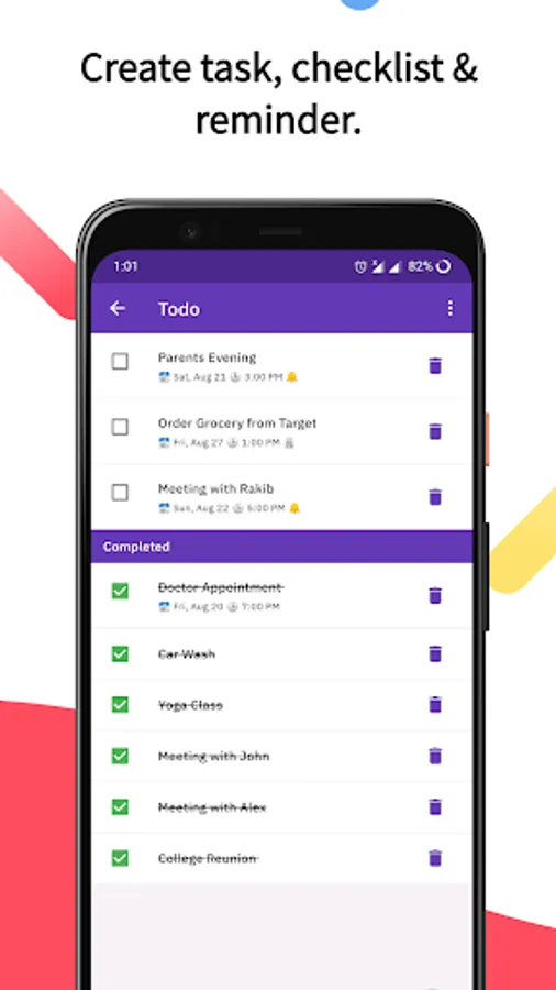 Break free from the stressful routine! Have a virtual task managing assistant app by your side that will make sure you never miss anything important. Wake up every day with a clear head and know that you have a reliable app by your side to help you with your daily tasks. Take a few seconds to save yourself from bigger troubles by making a list maker app.