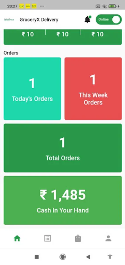 Groceryx Delivery Partner app helps delivery partners to get near by order notification and deliver order package to user.
