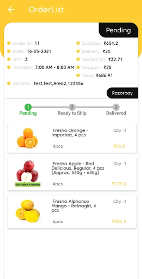 User friendly Date & time and Payment Gateway (Pickup Myself, Cash on Delivery (COD),Razorpay)