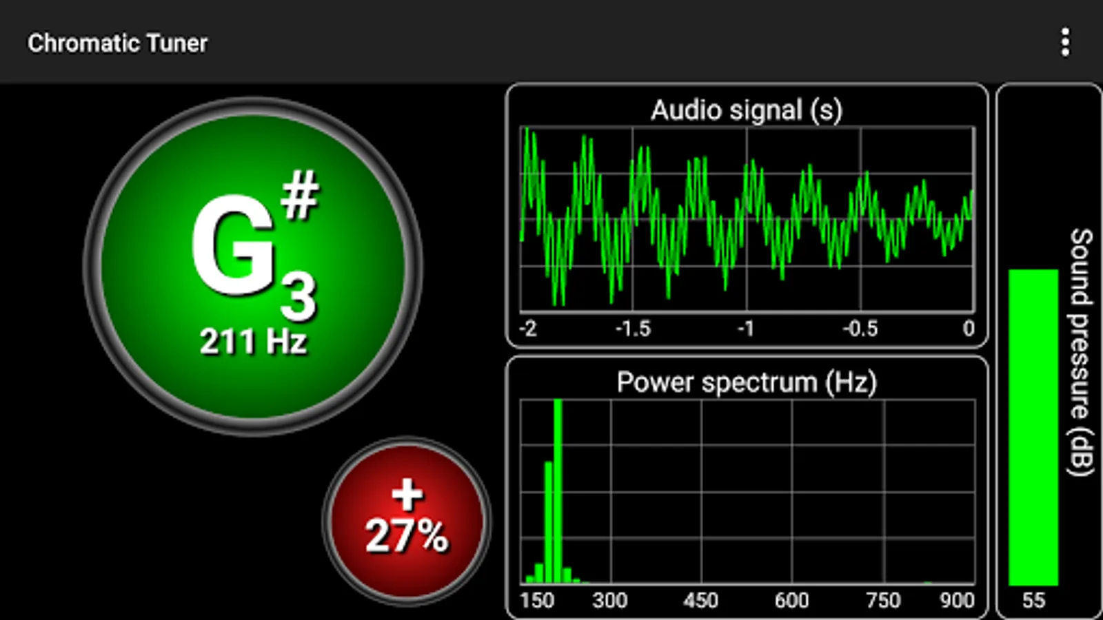 Accurate and fast chromatic tuner with wide range covering C0(16Hz) - B8(7902Hz).