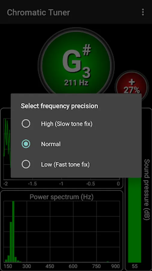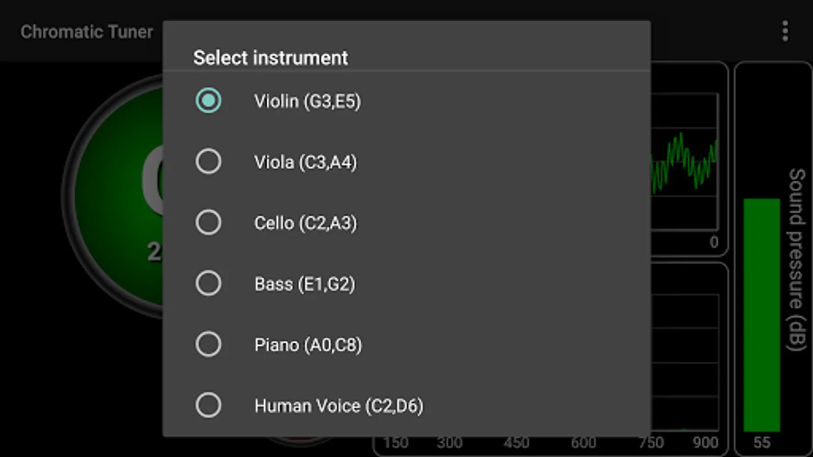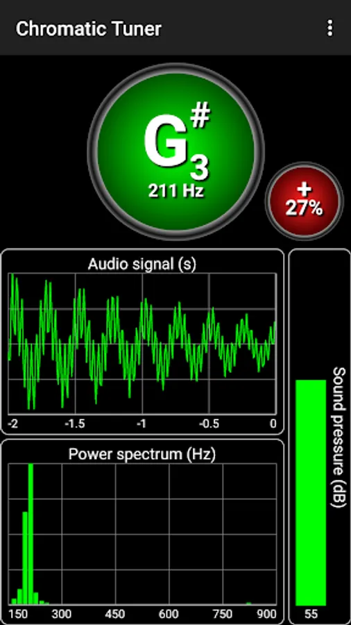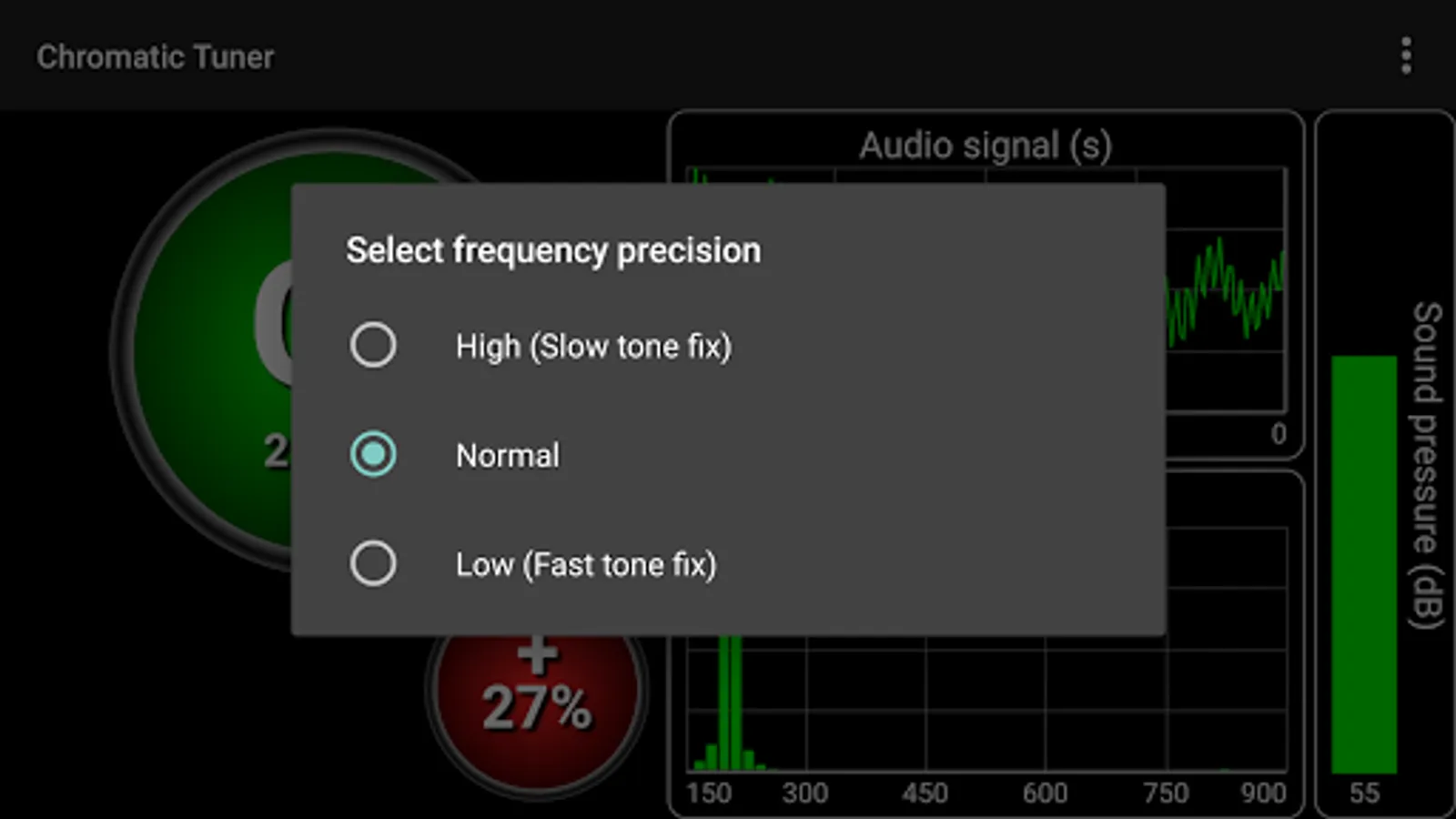 Accurate and fast chromatic tuner with wide range covering C0(16Hz) - B8(7902Hz).