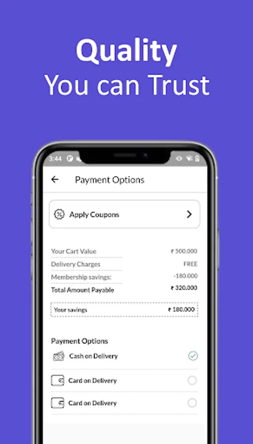 Select cash on delivery (COD) option or pay with credit card or debit card.