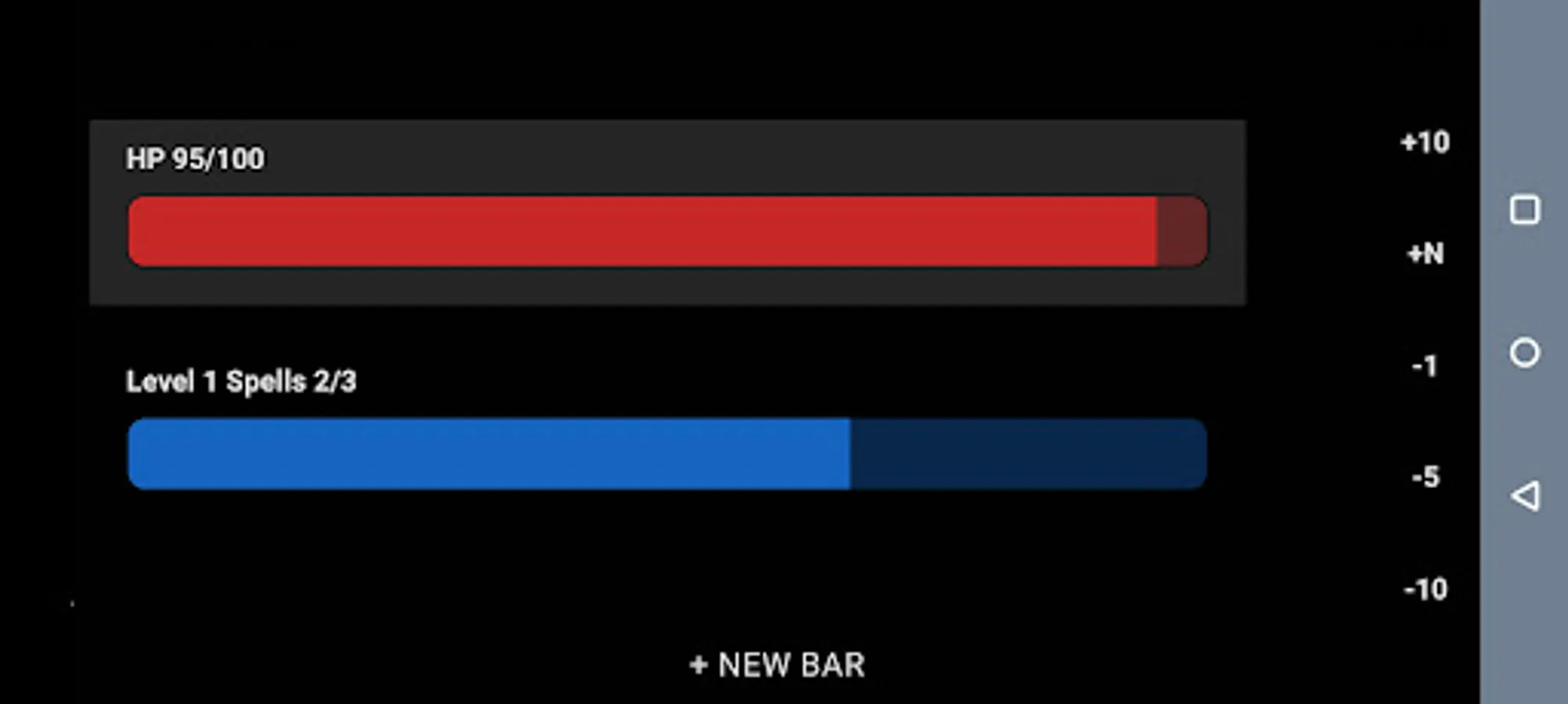 Note: This App is an updated version of the RPG Health Bar App, for those who want unlimited bars or prefer a modern design. This app does not have a free/ad-supported version.