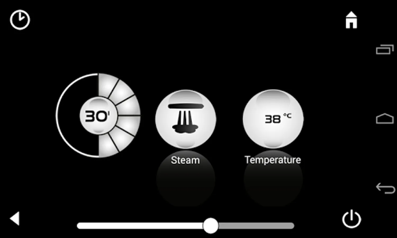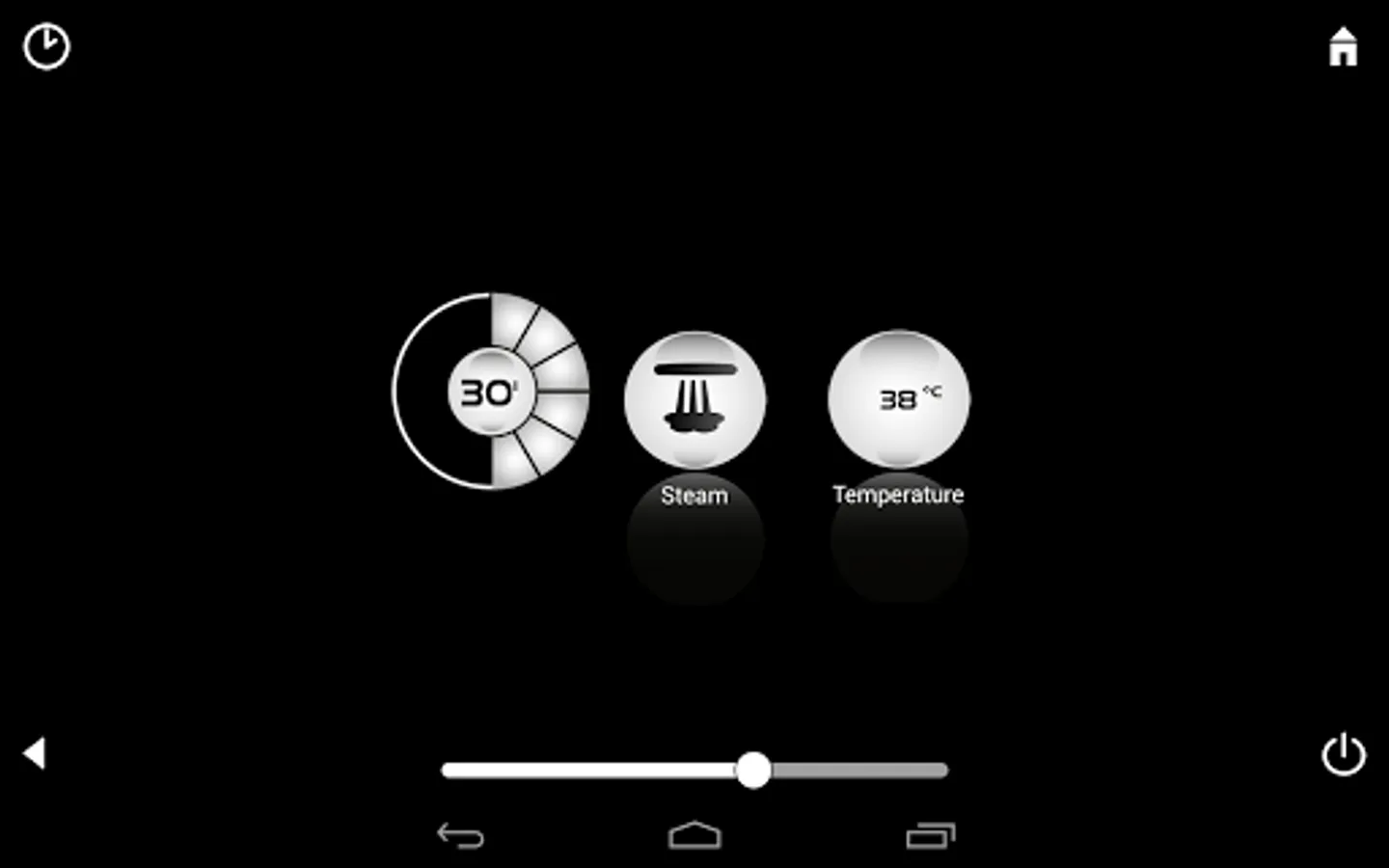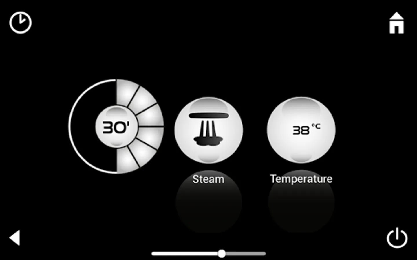 Steam The GROHE SPA F-Digital Deluxe App also controls the steam module in the shower area. Here you can turn the steam generator on and off and select the maximum temperature and the duration of your steam shower. A new feature is the programmable start time.