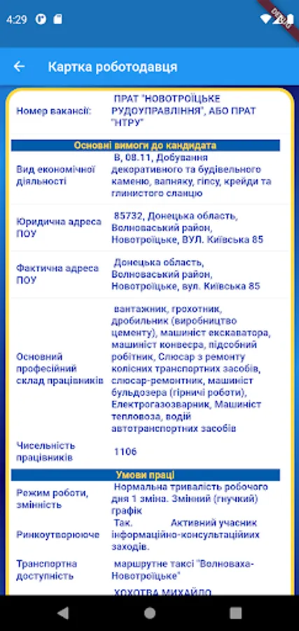 - contacts of the employment center.