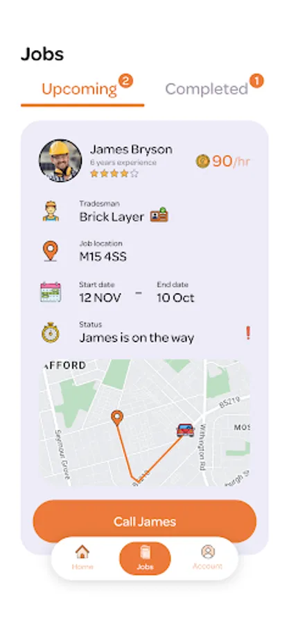 To book a tradesperson it takes 3 simple steps of setting your location, the duration of the job and the trade you are looking for. Within 30 minutes you will receive a list tradespeople for you to choose from for your job! Once you have chosen a tradesperson for the job you will be able to track their location as they arrive for the job and begin. You can then rate the tradesperson once the job is completed.
