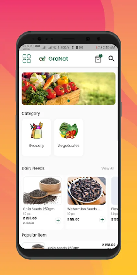 GroNat is a online store where every person of Udaipur can order Organic vegetables & grocery by this Application and accept a healthy lifestyle.