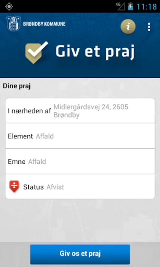 If you discover errors or omissions on roads, paths or green areas in Brøndby, which you think should be corrected, please send us a hint.