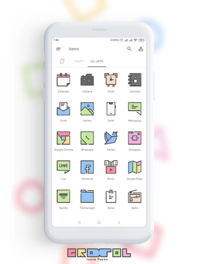 Grontol Icon Pack contains 200+ beautiful flat and fresh colors to customize your mobile device!